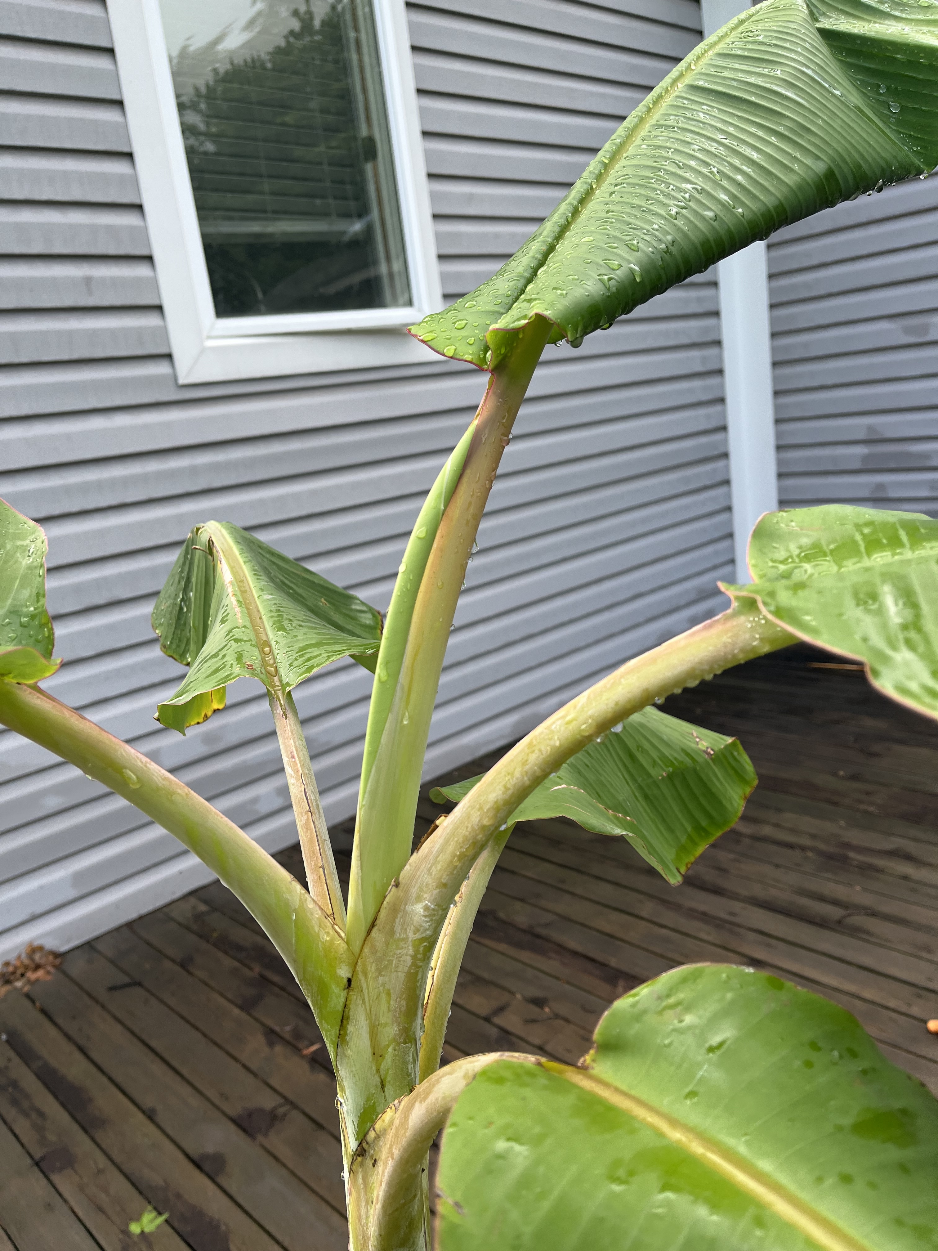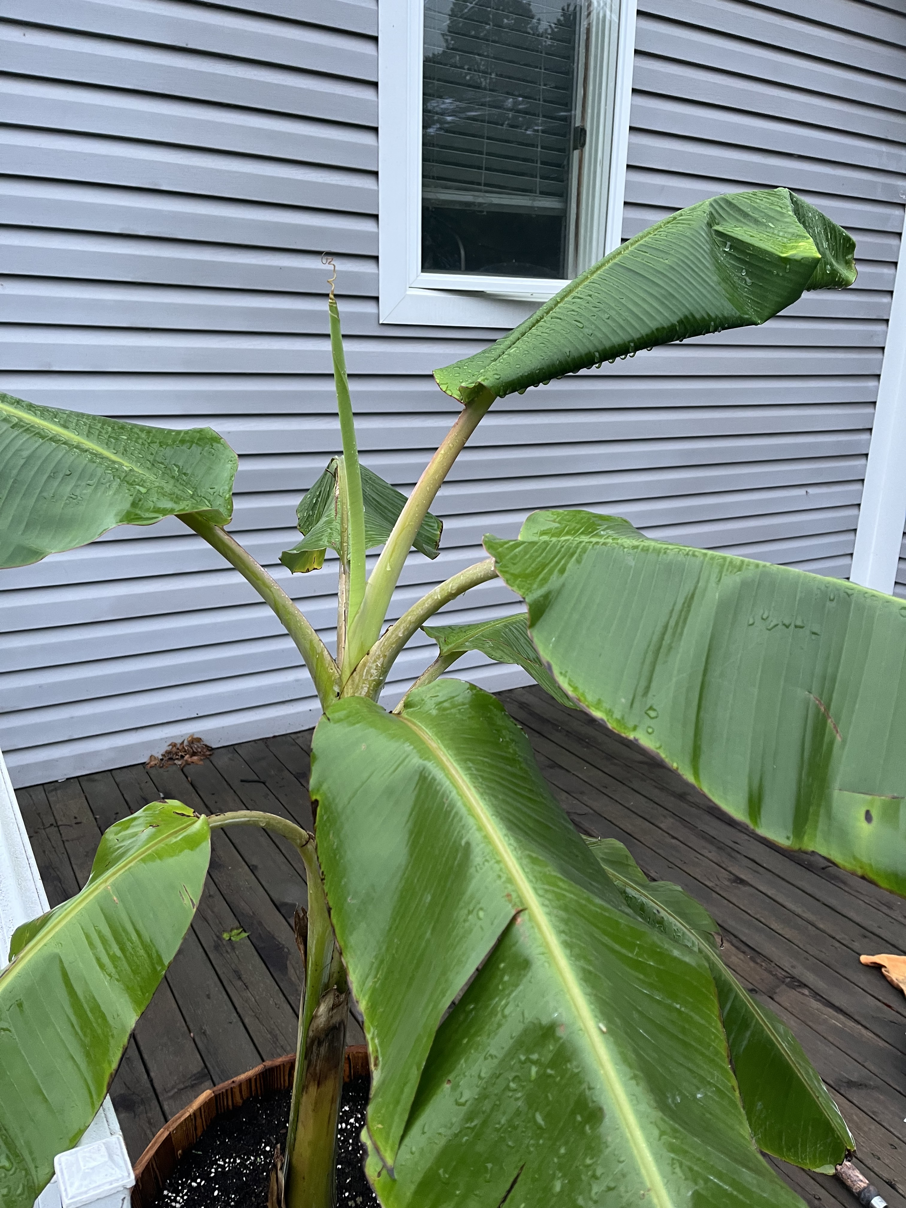 Heavy rains brought the oak’s first bud into a leaf, the lemon-lime tree turned green, and the banana tree burst its bulge.