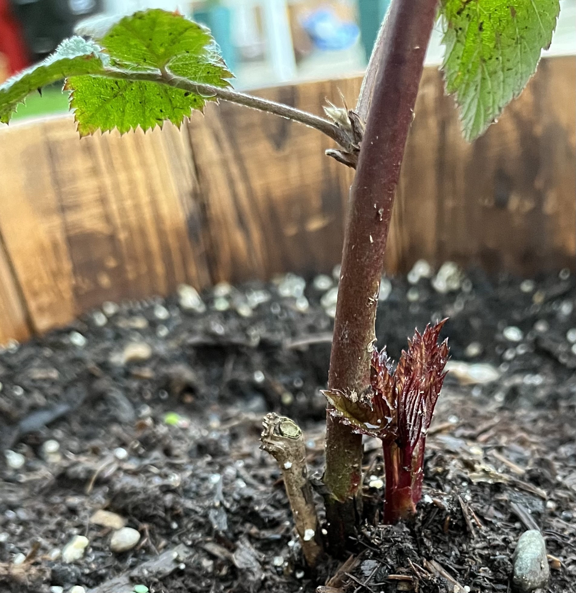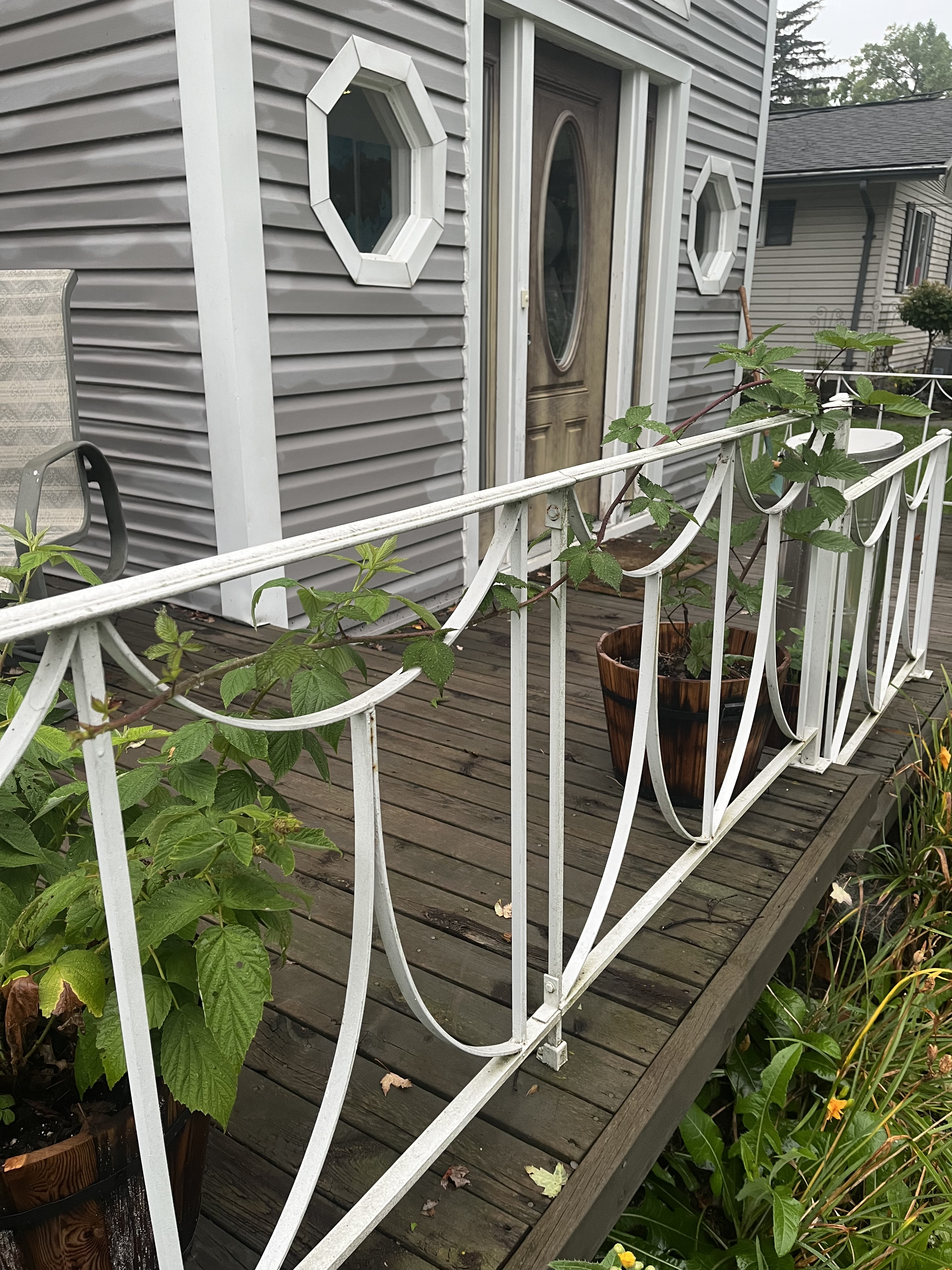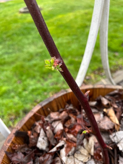 5.01.2024. This started with this one branch and a couple berries, one of which was red. It stayed that way for a week or so, then this little shoot sprouted next to the branch. Every day this shoot grew until it climbed all the way down the front rail. That’s where it got to when winter’s chill put it to sleep.