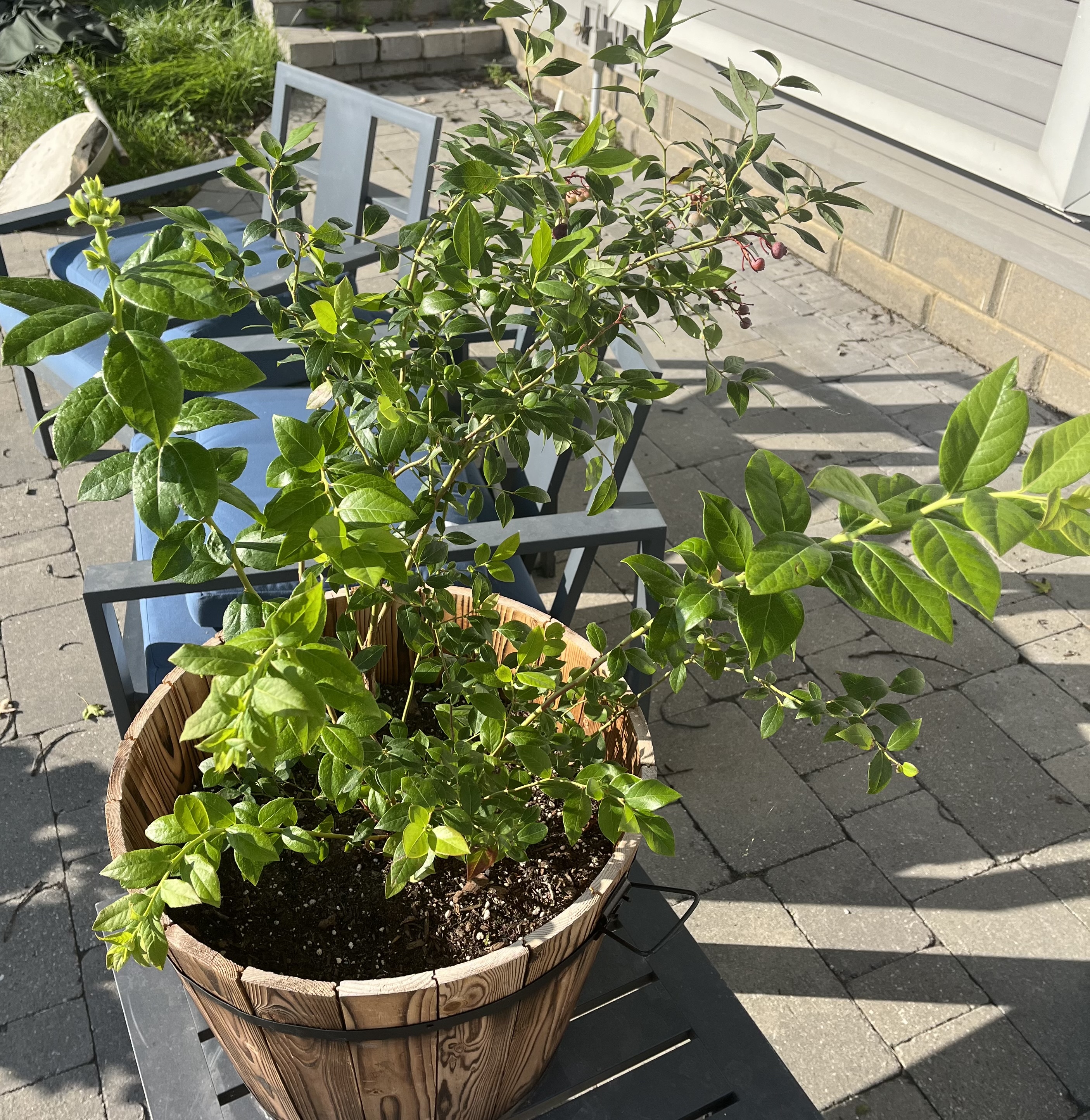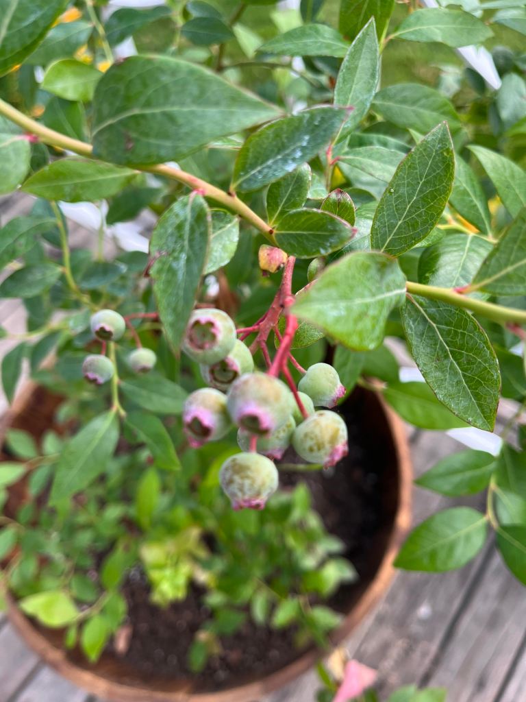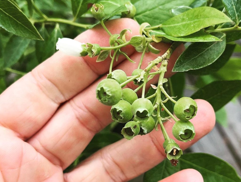 4.28.2024. The berries we got were already formed when we planted the bush. So we don’t really know when it would flower. As of the end of April, the leaves only just started poking their tips out of the buds. Blueberries are late bloomers so we’ll see…