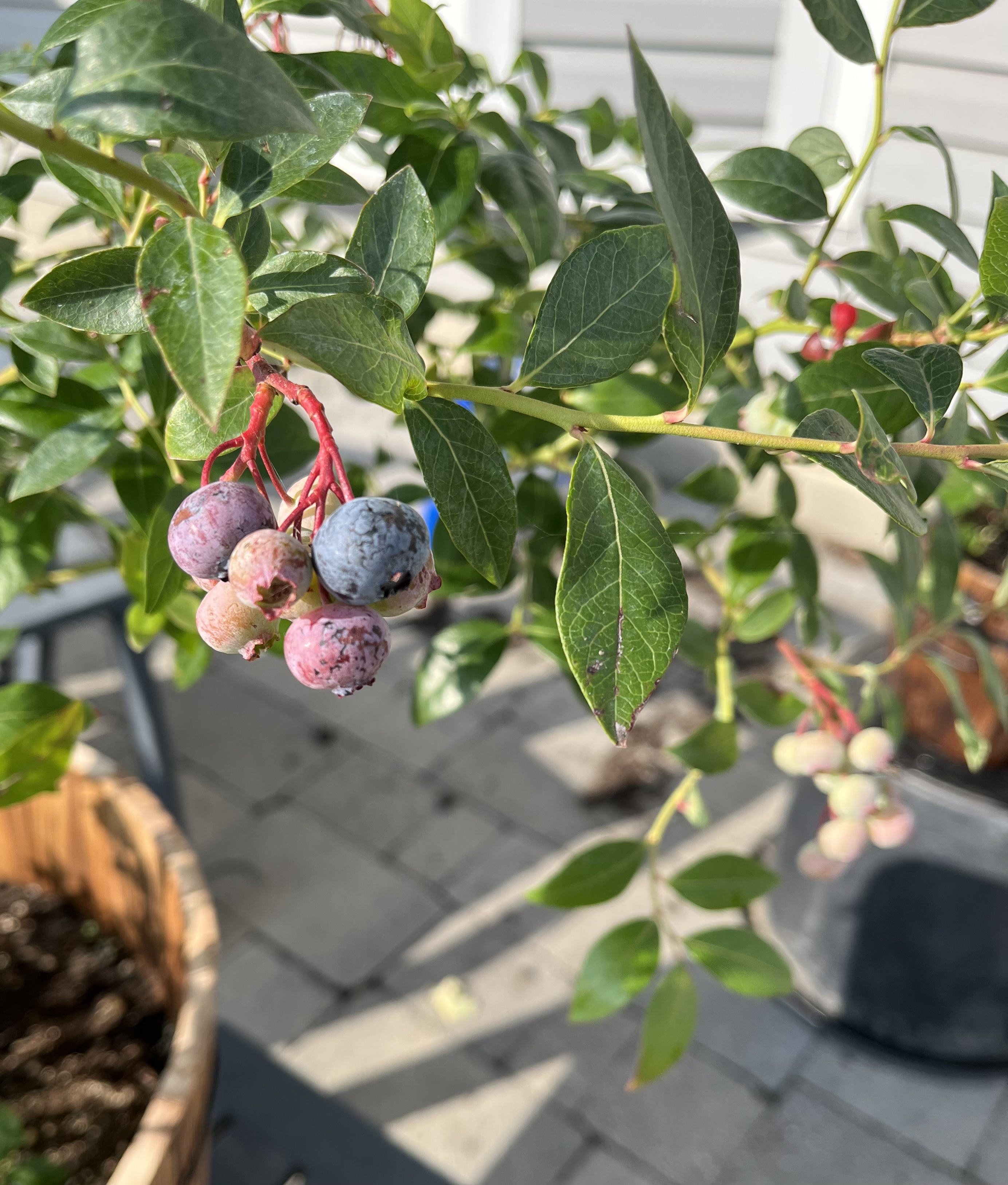6.22.2023 This bad boy came ready to party, sportin’ berries left and right but still wet behind the leaves. Within a week the branches brightened to pink and started flushing the magenta into the berries. We have it on good authority that harvest season starts in August. That’s a month and a half of pure blueing action ahead…