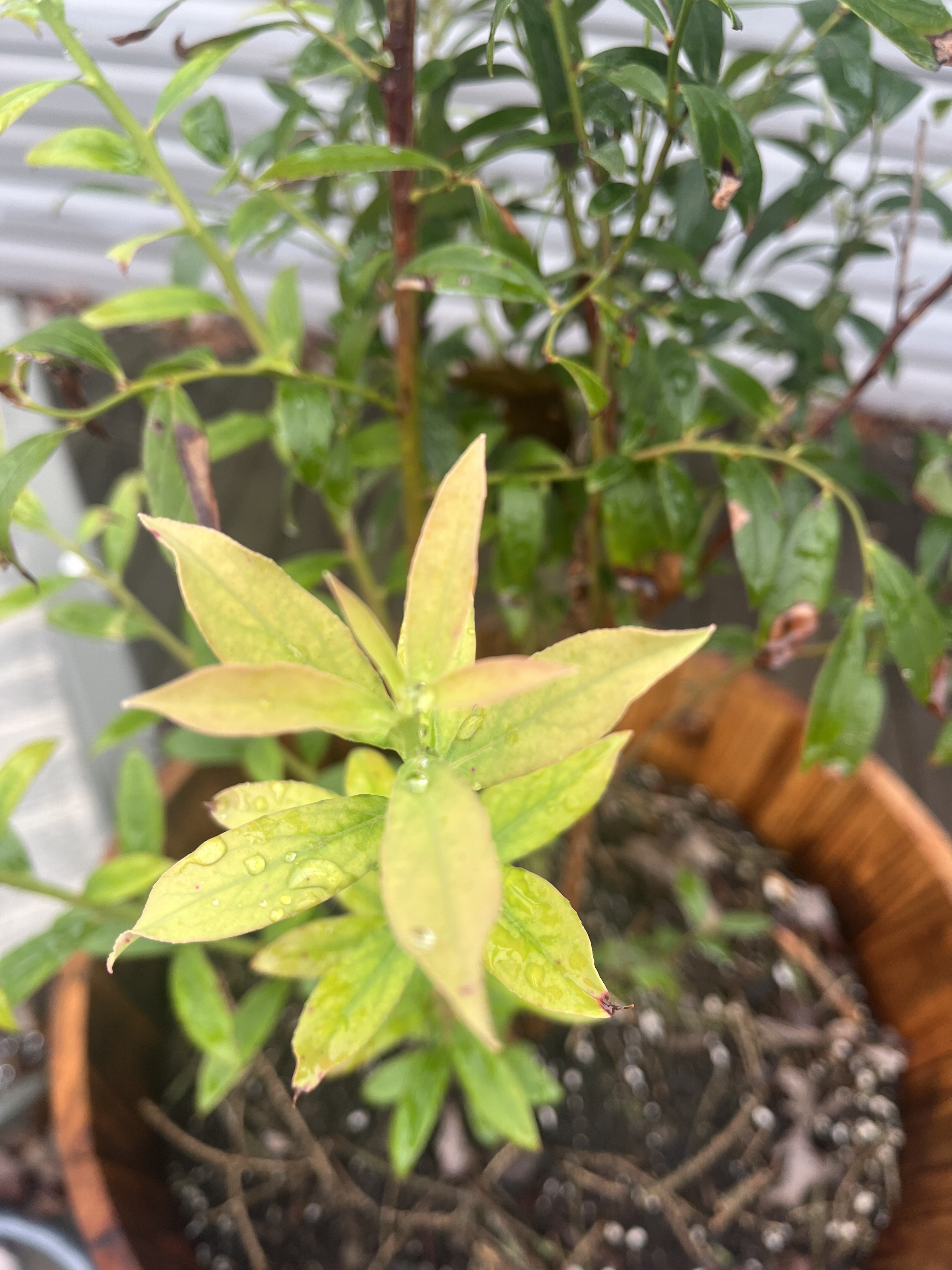 4.28.2024. These grew new shoots and leaves last summer. It’s only now opening its first leaves as April ends. It’s just a hair ahead of the heritage blueberry bush.
