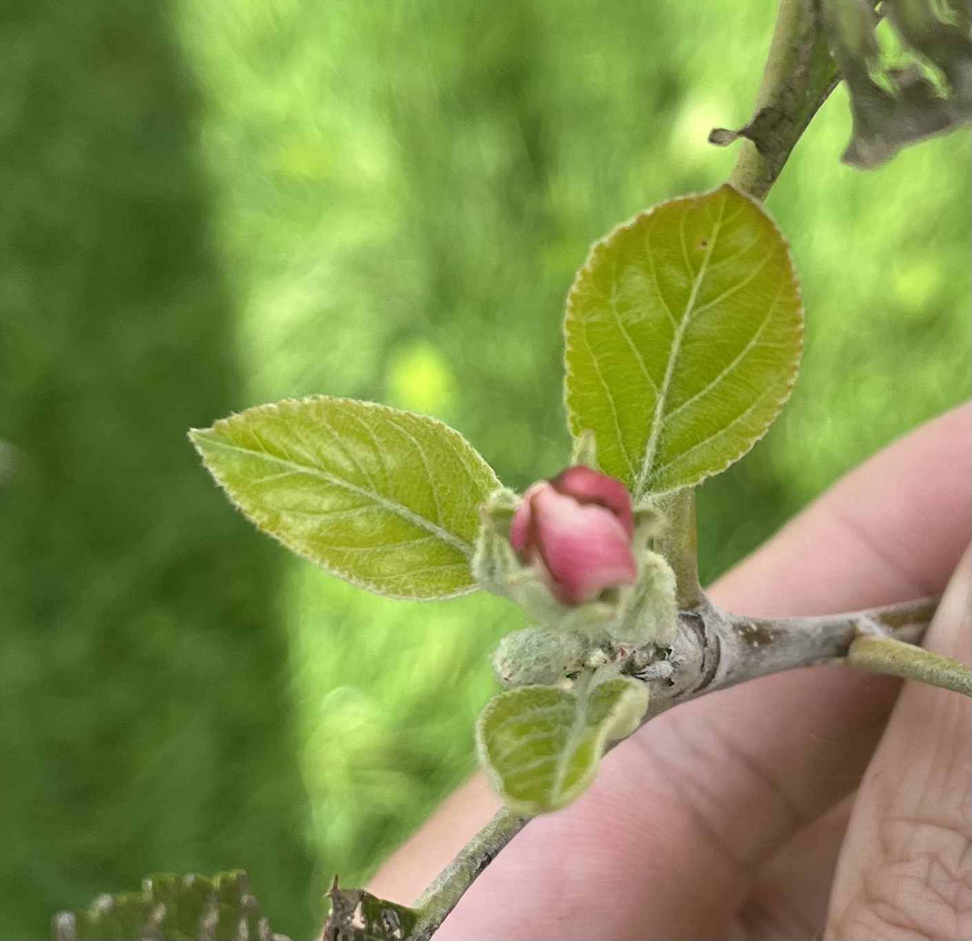 6.22.2023 November, as late as December, for these vibrant red apples. There is no data on taste, going in. As this individual is a year older, perhaps we might see the first apples appear this fall.