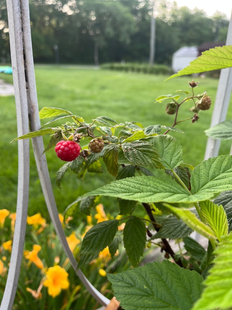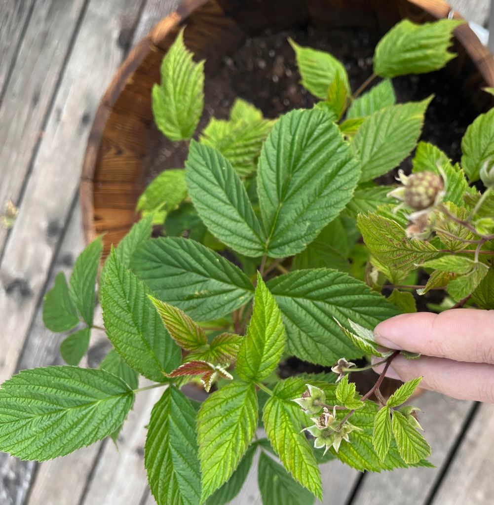 4.28.2024. We got raspberries shortly after the golden raspberries, late September. I pruned the bush in February and it was leafing in March. Now in late April, the tiny bulbs are appearing, so there might be an early harvest…